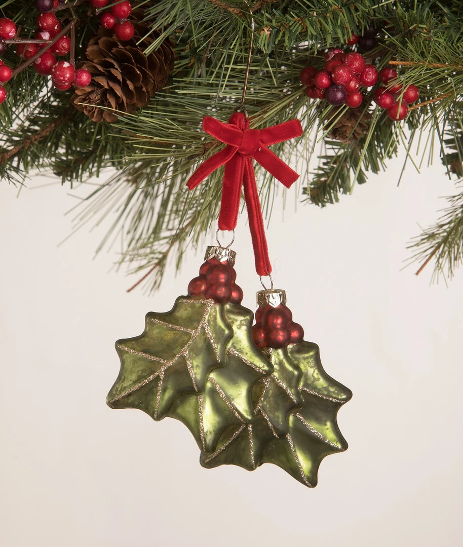Give your Christmas decor a festive feel with this antiqued Holly Dangle Ornament.