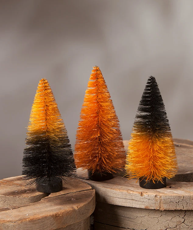 Give your Halloween decorating dimension with these orange and black Magic Ombre Mini Bottle Brush Trees.