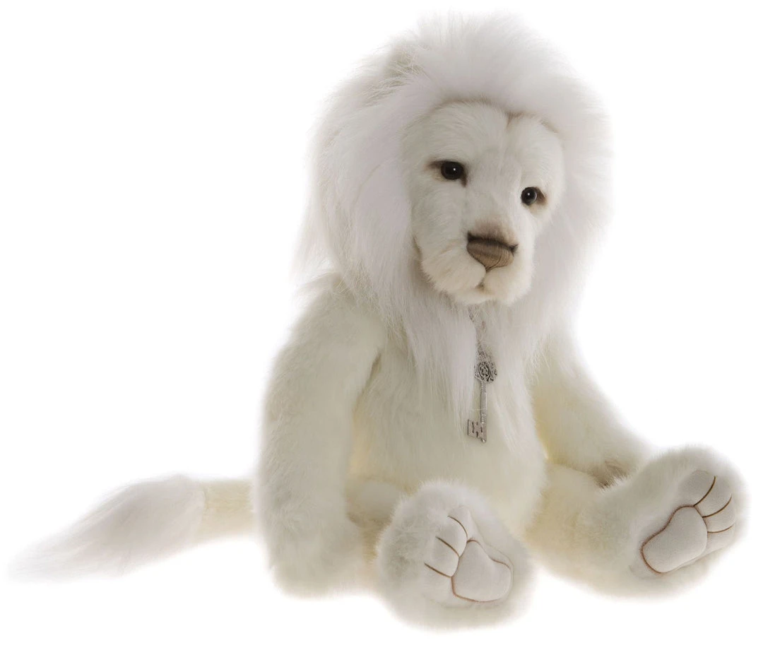 Dandyย is a lovely fulled jointed soft plush white lion stuffed animal. Dandy Lion has handsome chunky oversized sculptured paws, a thick set tail and hand embroidered nose with subtle airbrushing detail over the top.