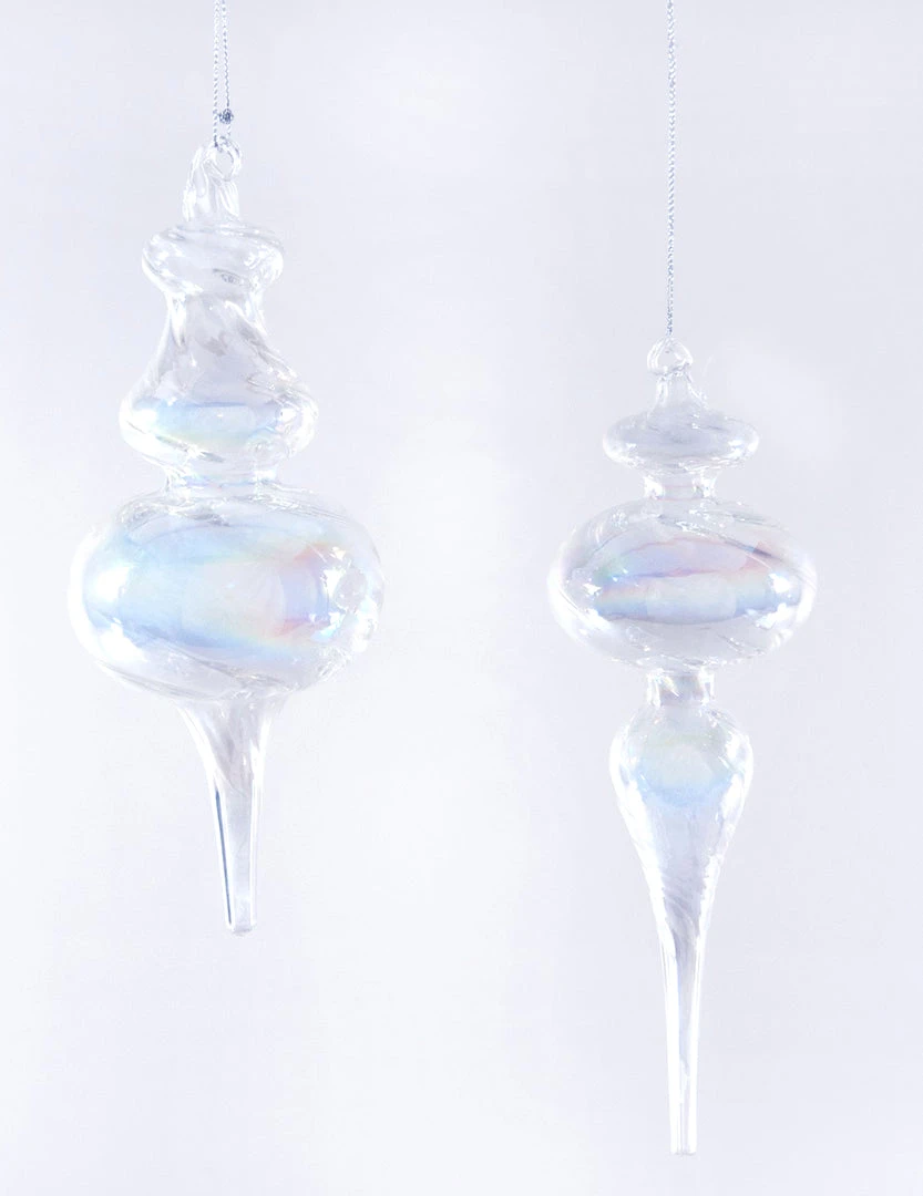 Swirl Glass Three Layer Finial Ornaments with feathers.