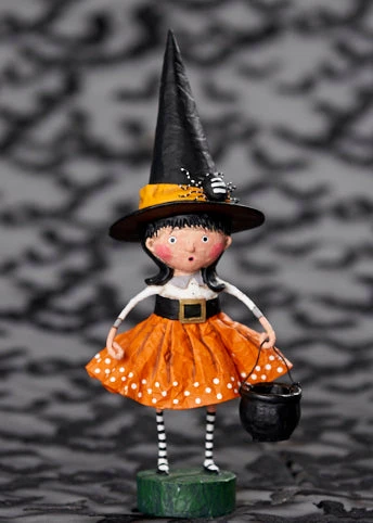 Bring sweet dash of hocus pocus to any desk, shelf or table with this sweet Spellbound Witch figurine designed by artist Lori Mitchell.
