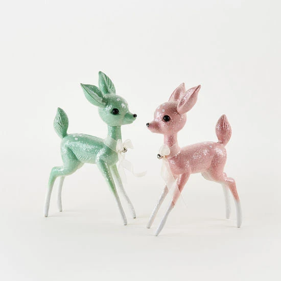 Set to stage for a very retro Christmas with these vintage-inspired glittered deer figurines.
