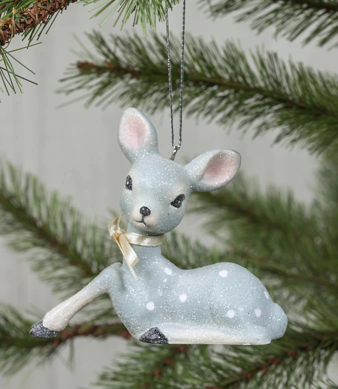 Give your holiday decorating a cheerful retro twist with this soft blue Resting Deer Ornament.