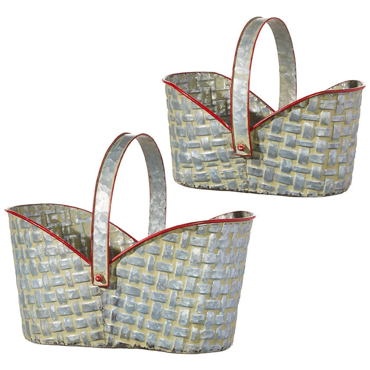 Create a festive arrangement in these lovely metal baskets with an attractive weave pattern for that perfect Country Christmas feel.