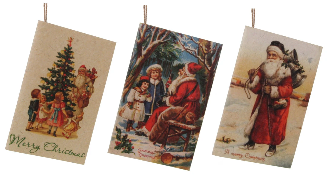 Give your Christmas decor vintage character with these Victorian Christmas Santa Card Ornaments.