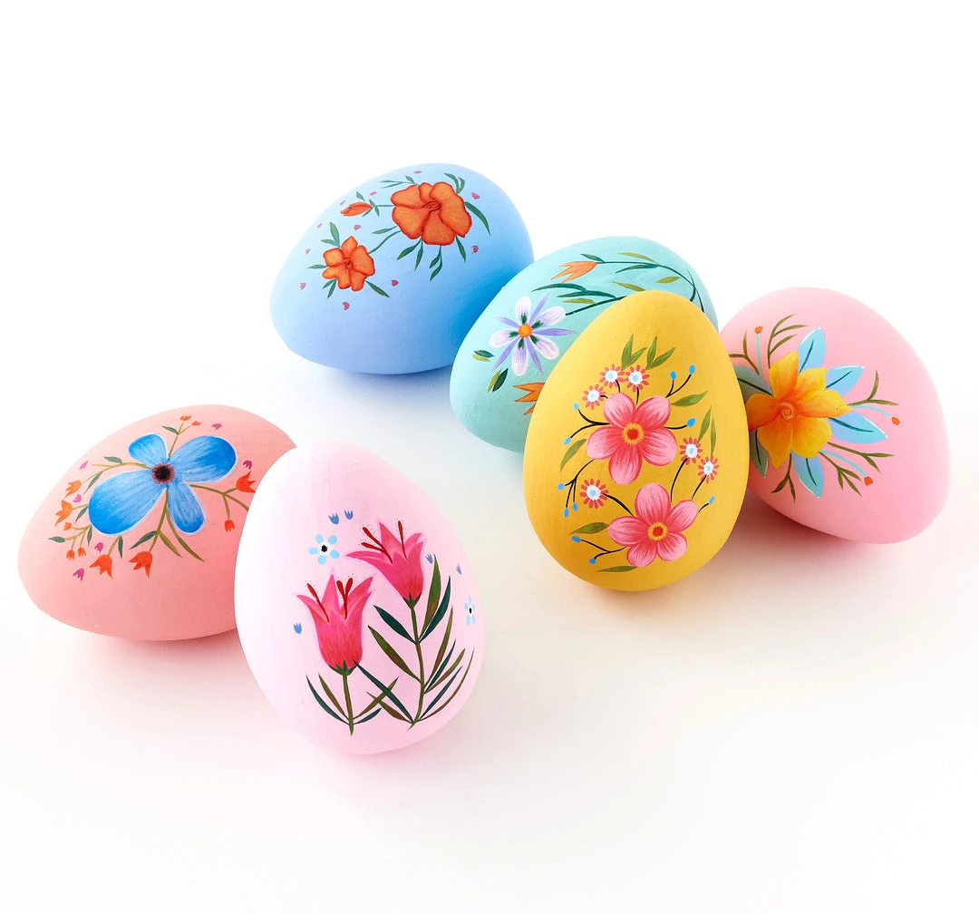 Bring a touch of spring to your Easter decor with these large colorful paper mache eggs hand-painted with flowers.